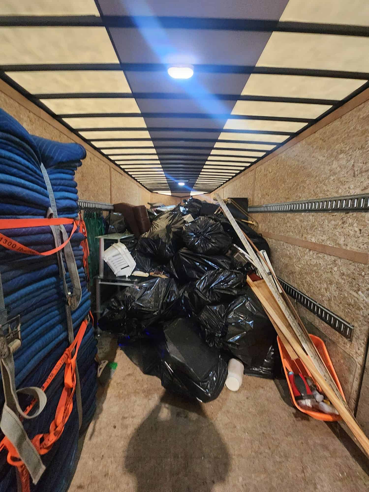 Our team has 4 trucks and 4 trailers, which allows us to offer timely moving services to our customers. We have large enclosed trailers for our residential and commercial moving services and a smaller enclosed trailer for all your Junk removal needs. Our trucks are equipped with a ball hitch and gooseneck which allows us to tow loads up to 50 feet. We have industry-leading tools, and modern moving equipment including mattress slings, mattress covers, wardrobe boxes, moving pads, floor runners, shrink wrap, tape and piano skids. Click to learn more about Our expert Moving Team.
